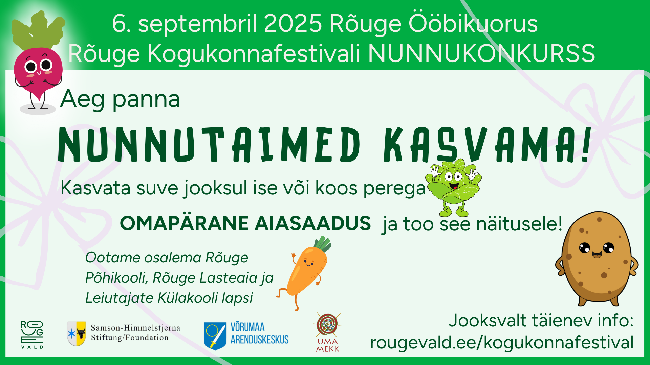 Rõuge vallavalitsus kutsub kõiki Rõuge Põhikooli, Rõuge Lasteaia ja Leiutajate Külakooli lapsi kasvatama suvel ise või koos perega omapäraseid aiasaadusi, mida tuua kogukonnafestivali nunnunäitusele.