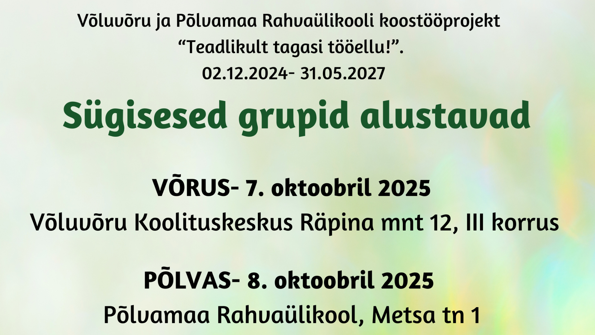 - eakatele ja puuetega inimestele vajalike teenuste osutamine;
