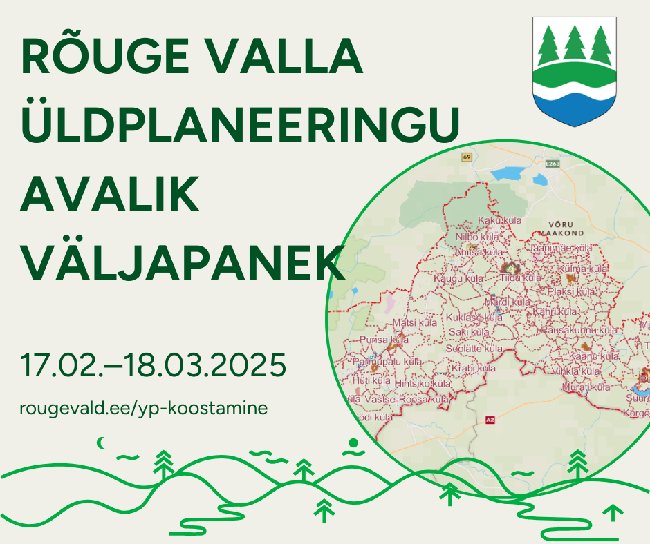 Rõuge valla üldplaneeringu avalik väljapanek toimub 17.02.–18.03.2025.