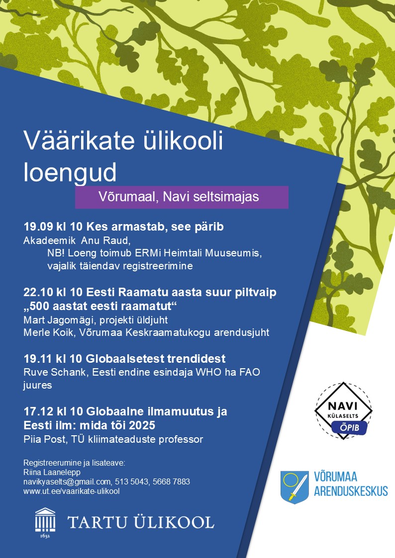 Väärikate ülikooli loengud toimuvad reeglina Navi seltsimajas (Võru vald), v.a esimene loeng!