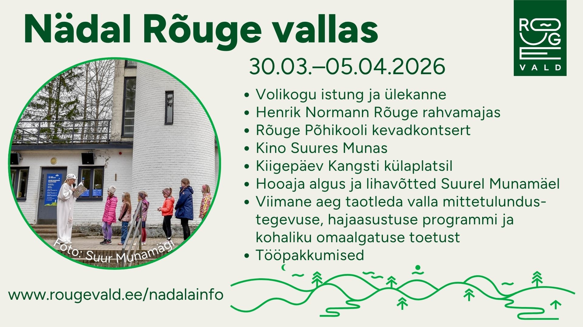 Nädal Rõuge vallas: 30.03.–05.04.2026