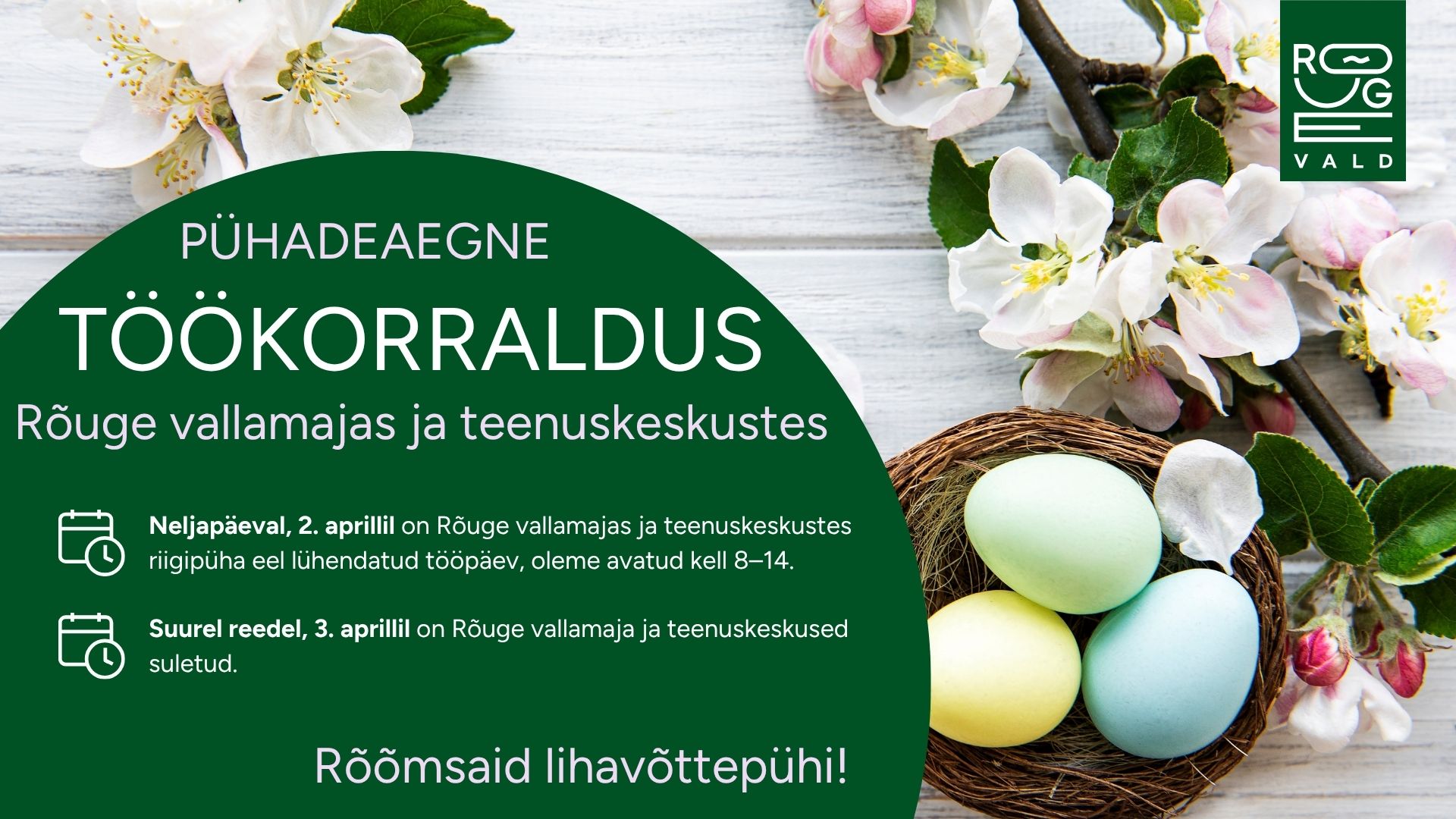 Neljapäeval, 2. aprillil on Rõuge vallamajas ja teenuskeskustes riigipüha eel lühendatud tööpäev: oleme avatud kell…