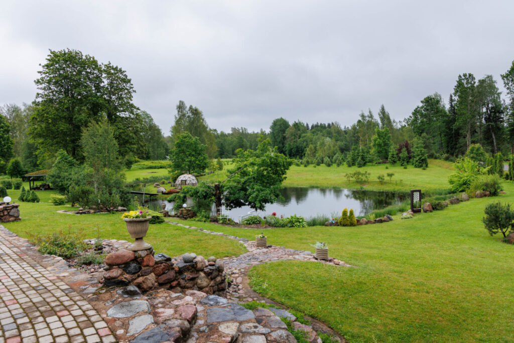 Mitmed veesilmad liidavad kinnistu maastiku visuaalselt tervikuks, peegeldades puid, lilli ja taevast ning tuues maastikku elurikkust ja liikumist. Taimede valik ja istutusalade paigutus näitavad suurt aiakujundustaju.