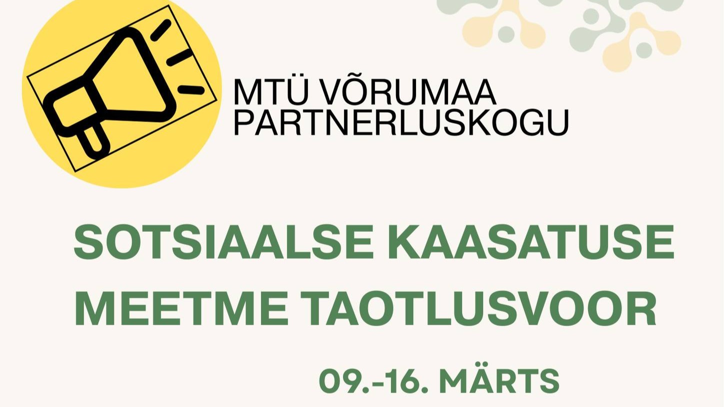 Projektitaotluste hindamise tähtaeg Võrumaa Partnerluskogus on hiljemalt 15. mai 2026.